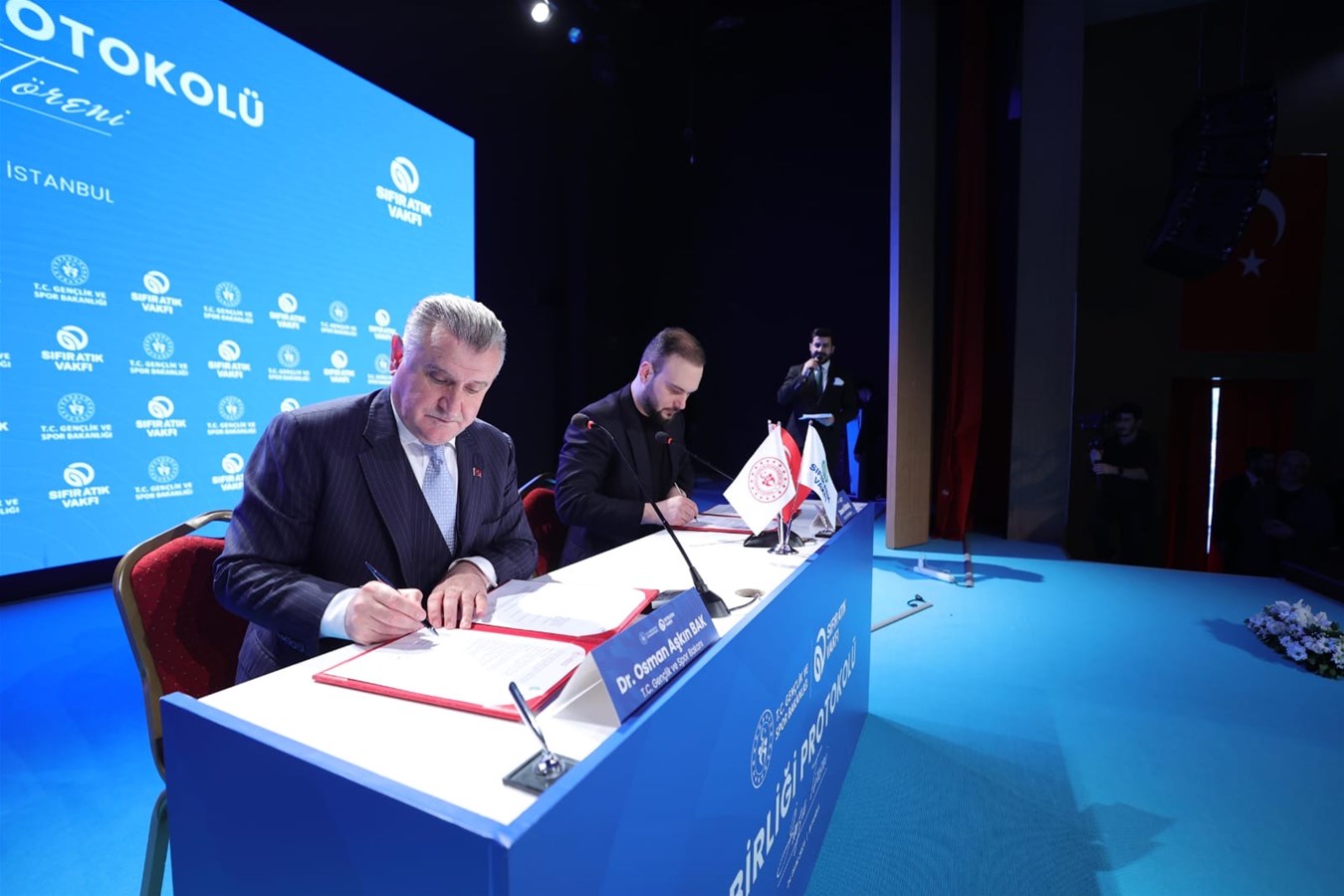 Gençlik ve Spor Bakanı Osman Aşkın Bak, Gençlik ve Spor Bakanlığı ile Sıfır Atık Vakfı arasında gerçekleştirilen Sıfır Atık Protokolü'nün imza törenine katıldı.