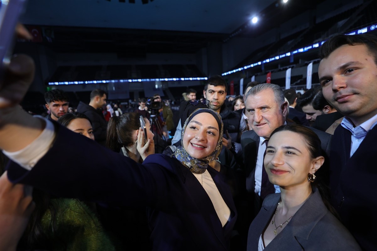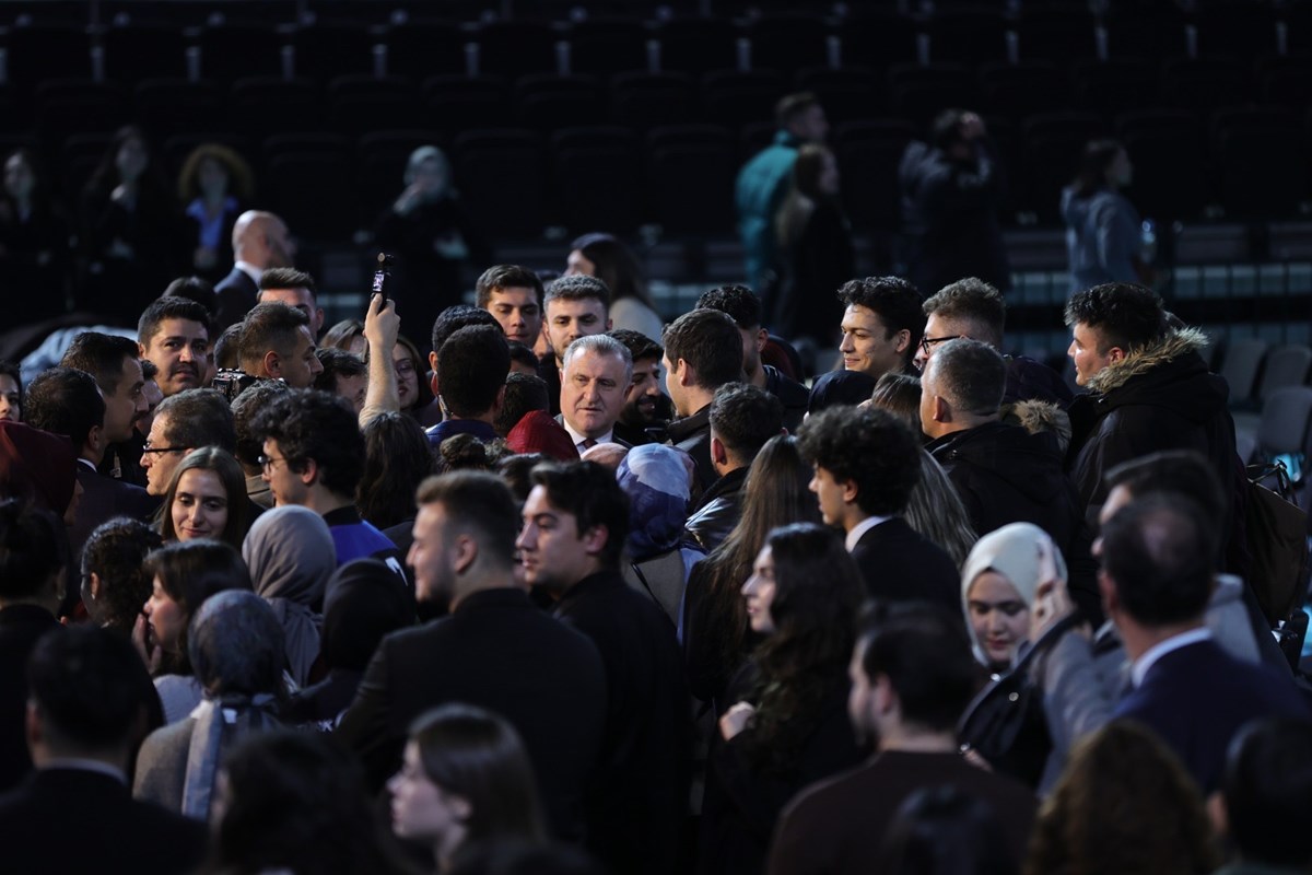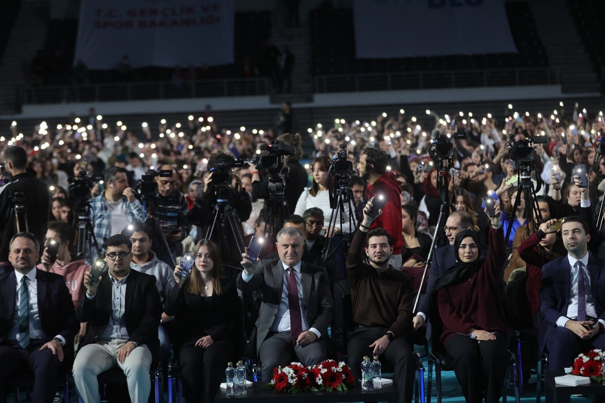Konuşmasını coşkuyla yapan Gençlik ve Spor Bakanı Dr. Osman Aşkın Bak'ı salondaki gençler ayakta alkışladı.