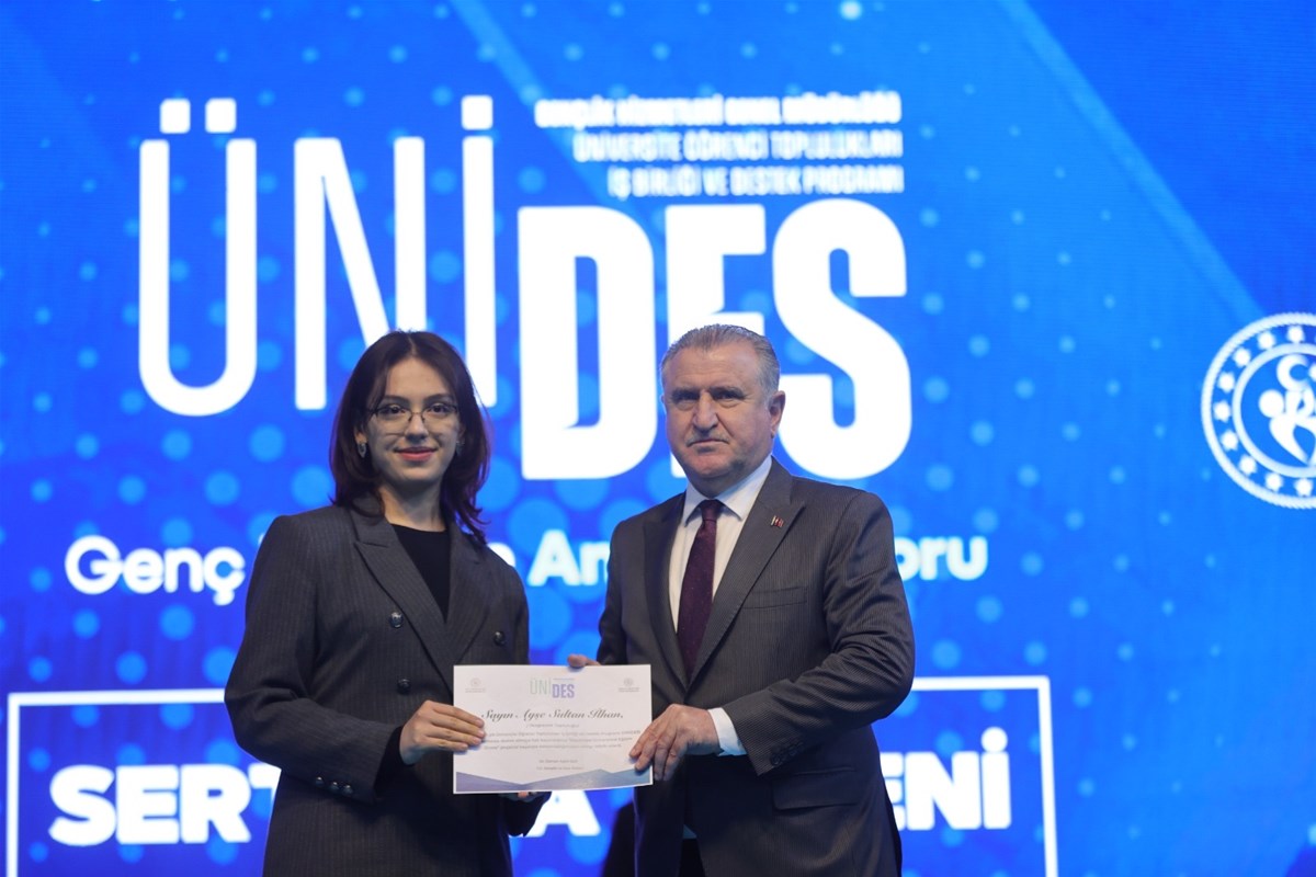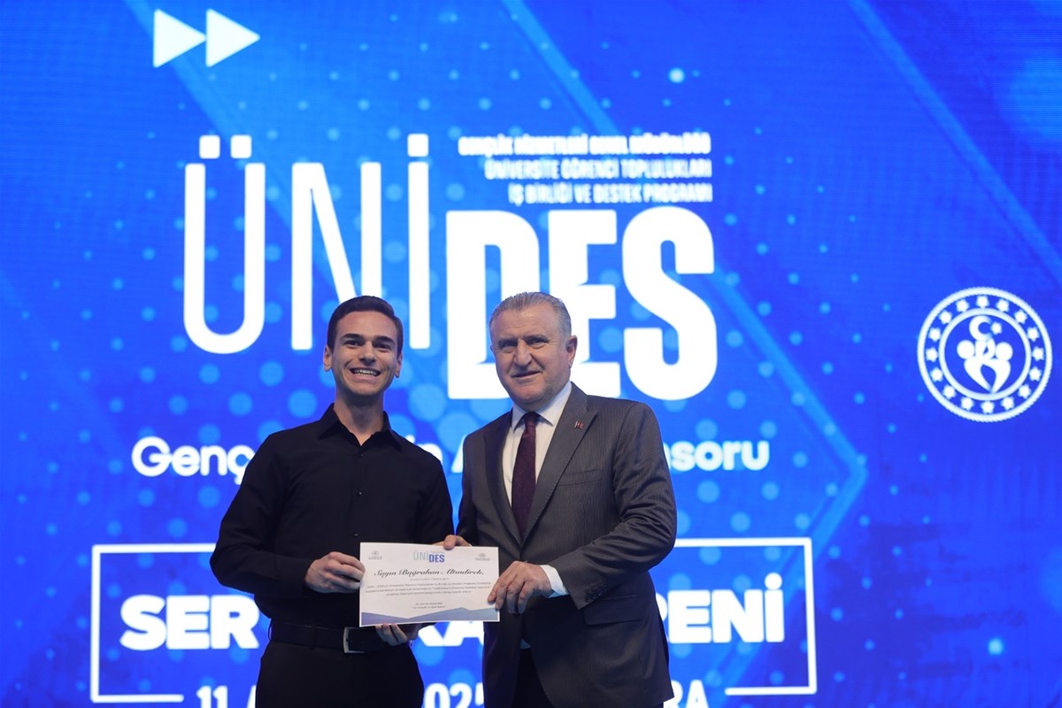 Bakan Bak, konuşmasının ardından ÜNİDES Bilgi Yarışması'nda dereceye girenlere ödüllerini, öğrenci topluluğu temsilcilerine ise sertifikalarını takdim etti.