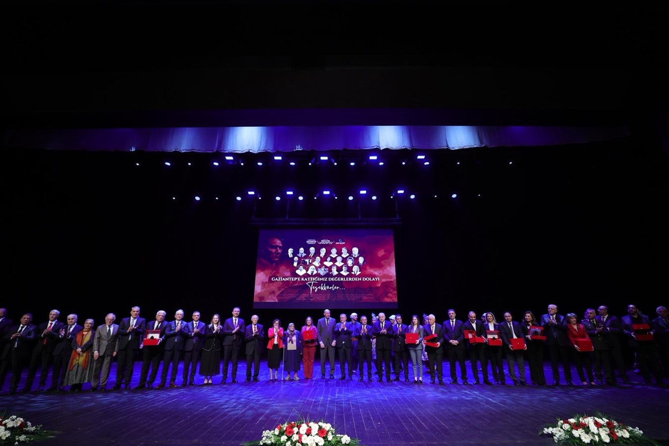 Törende, Gaziantep'e değer katanlara plaket verildi. Programa Vali Kemal Çeber, Büyükşehir Belediye Başkanı Fatma Şahin, milletvekilleri, şehit yakınları, gaziler ve davetliler katıldı.
