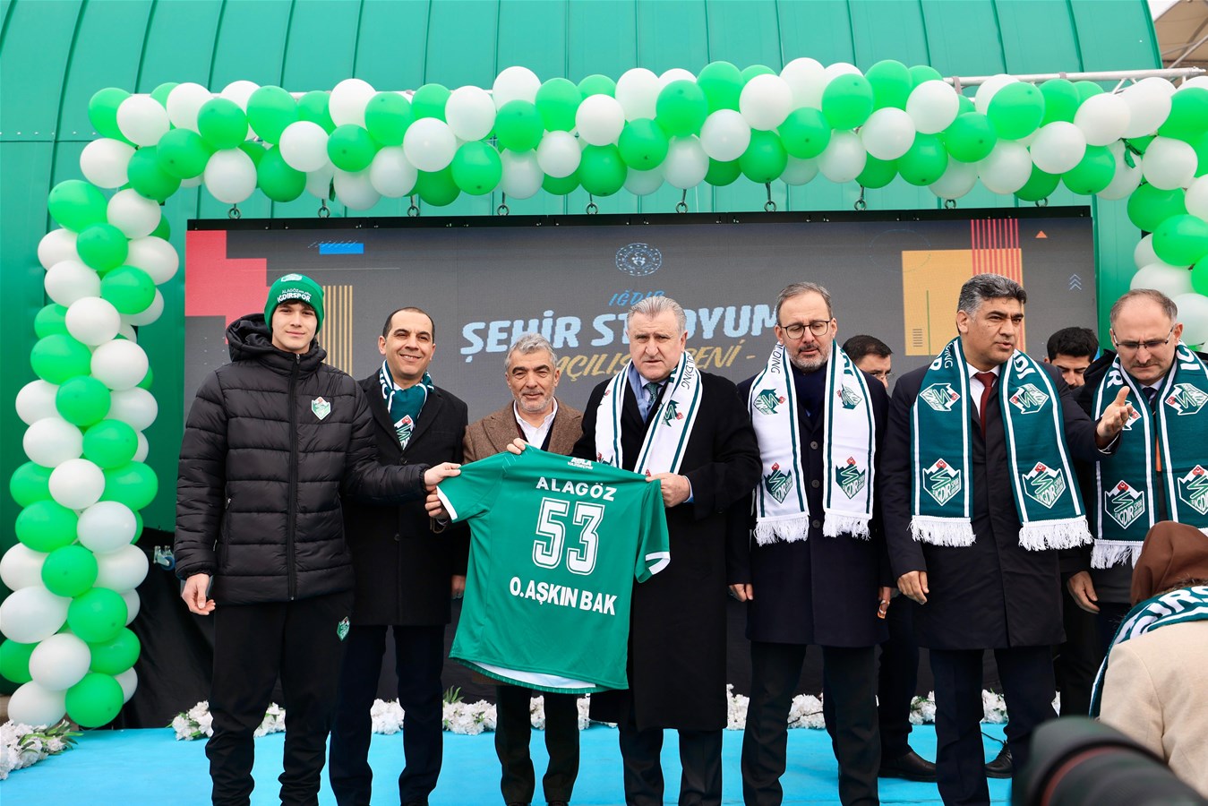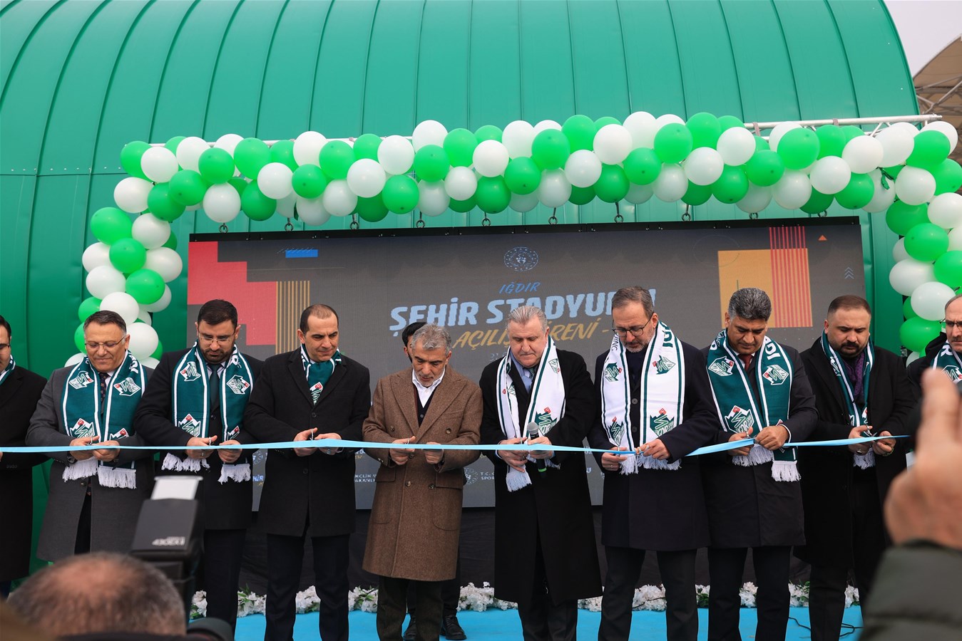 Konuşmaların ardından Bakan Bak, Iğdır Valisi Fırat Taşolar, önceki dönem Gençlik ve Spor Bakanı ve İzmir Milletvekili Dr. Mehmet Muharrem Kasapoğlu ve sporcular stadın açılışını gerçekleştirdi.