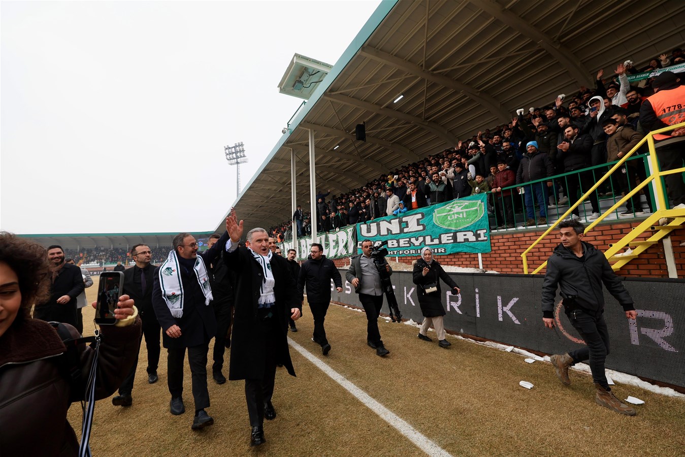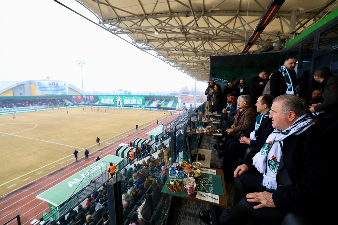 Bakan Bak ve beraberindekiler, stadı gezerek futbolseverleri selamladı, daha sonra Alagöz Holding Iğdır FK - Manisa FK maçını izledi.