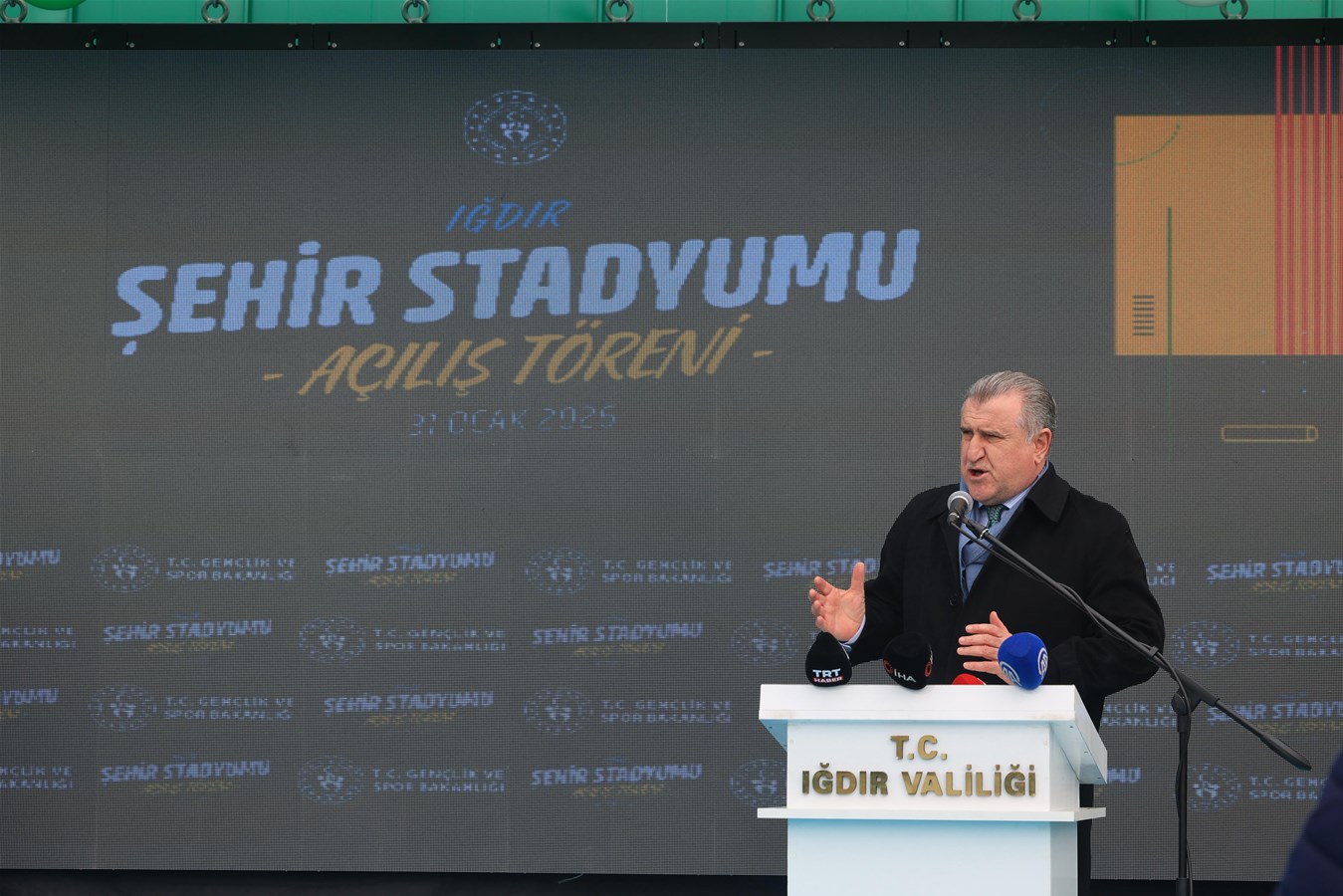 Gençlik ve Spor Bakanı Dr. Osman Aşkın Bak, bakanlık olarak en büyük hedeflerinden birinin gençleri kötü alışkanlıklardan uzak tutmak olduğunu belirterek, “Bunun ilacı da, yolu da spordur, gençleri spora yönlendirmektir. Şehrimize bu stadyumu kazandırırken, kulüple ve şehirle iç içe, güzel bir çalışma ortaya koyduk. Elbette bu yatırımlar devam edecek. İnşaatı devam eden ve hayata geçireceğimiz diğer spor tesisleriyle, Iğdır’ı bambaşka bir noktaya taşımak için çalışıyoruz.” dedi.